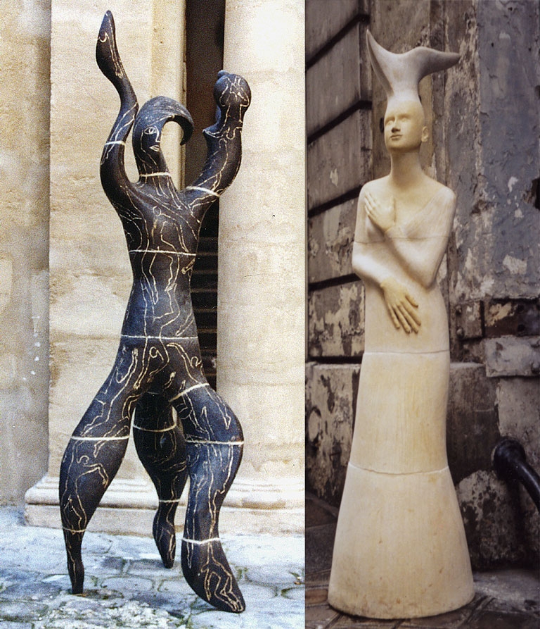1993 Amazone 1 La Noire, grès ht 230cm - 1992 La Dame Blanche 1 grès ht 160cm