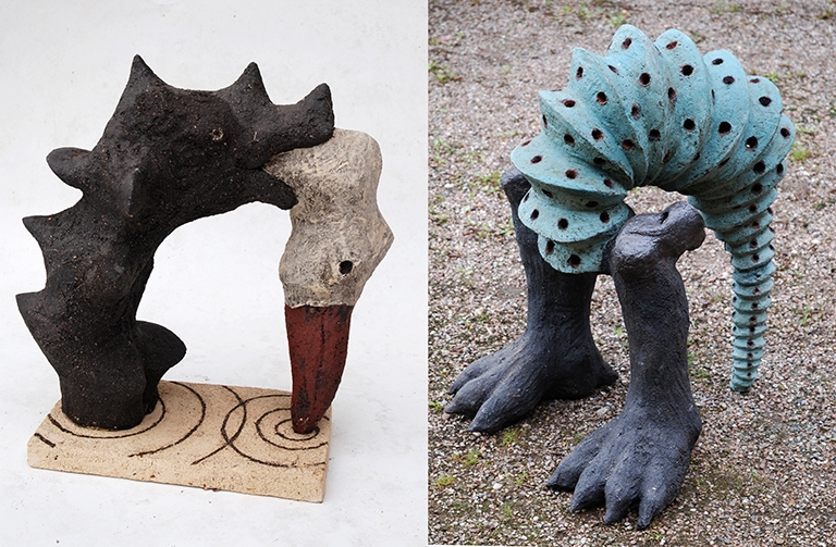 2006 Le bibelot ht 53cm - 2008 La chenille à pattes grès, ht 70cm env