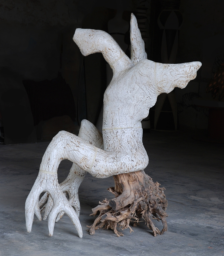2007 Esprit Migrant, grès, bois, haut 150cm